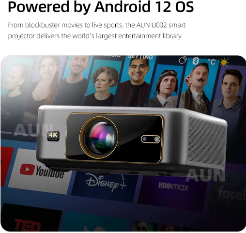 Projetor U002|Projetor U002 4k|Resolução 4K Android:Desfrute de vídeos em 4K com Android TV OS, conectividade robusta e fácil acesso a aplicativos.