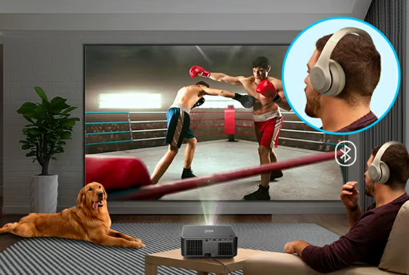 Conecte fones de ouvido sem fio para visualização privada ou transforme o projetor em um poderoso alto-falante Bluetooth para momentos compartilhados.