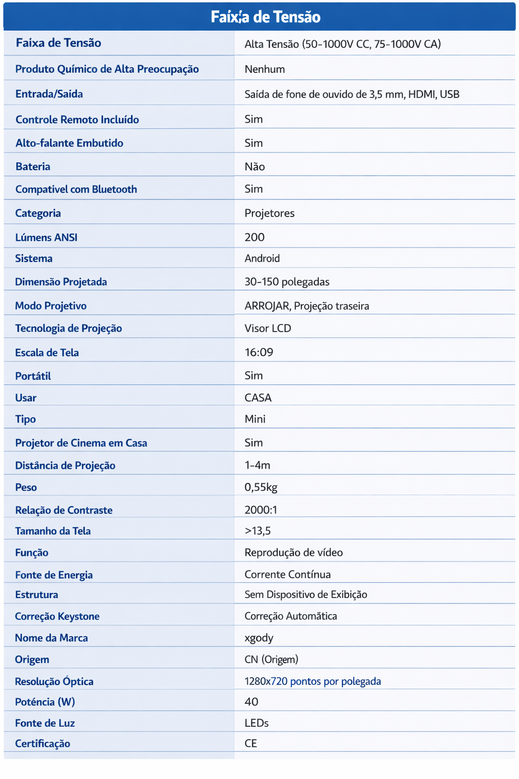 Transforme qualquer ambiente em um verdadeiro cinema com o Mini Projetor XGODY G5. Compacto, moderno e cheio de tecnologia, ele é perfeito para quem busca praticidade e qualidade de imagem em um único aparelho.